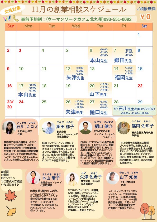 『令和7年11月創業窓口相談』スケジュールアップしました(北九州市)