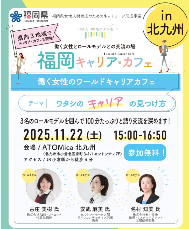 働く女性とロールモデルとの交流の場「福岡キャリア・カフェ」@北九州を開催!(福岡県主催)