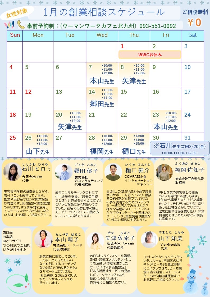『令和8年1月創業窓口相談』スケジュールアップしました(北九州市)