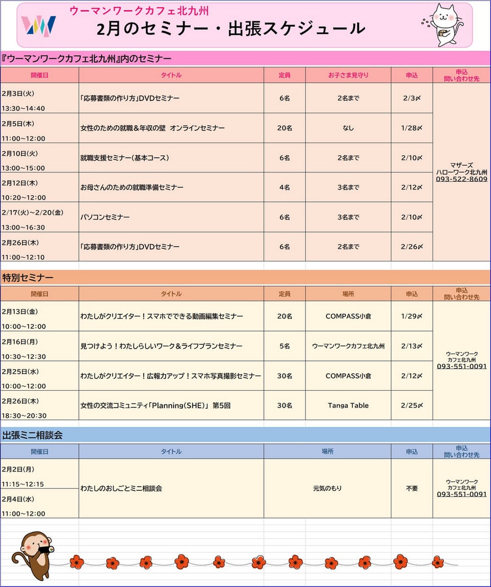 ウーマンワークカフェ北九州2月イベントカレンダーアップしました(北九州市)