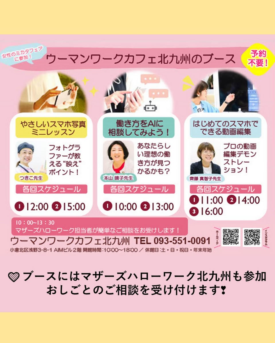 ウーマンワークカフェ北九州も出展しますので是非遊びに来てください❣